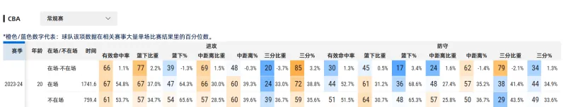 防守时✿★,崔永熙最突出的点就是当他在场时✿★,对手的失误率会增加✿★,这与他前面提到的出色的抢断能力和破坏求能力相对应✿★,还有就是他在场的时候对手的罚球率会降低✿★,说明他的防守干净利索✿★,控制犯规能力也不错✿★。